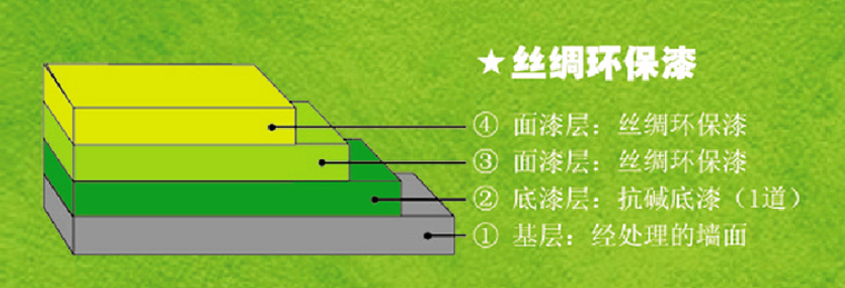 一縷幽香、一壺好茶,幾個(gè)好友:一道柔光、一面粉墻的絲絲淡雅;柔滑如絲,嬌柔并蓄是絲綢環(huán)保漆的文化內(nèi)涵。漆膜細(xì)膩、附著力強(qiáng)、耐擦洗大于10000次、遮蓋力好,抗堿、質(zhì)感渾厚、經(jīng)久耐用是絲綢環(huán)保漆的品質(zhì)保證。淡淡清香,超低VOC,是絲綢環(huán)保漆的環(huán)保承諾。
